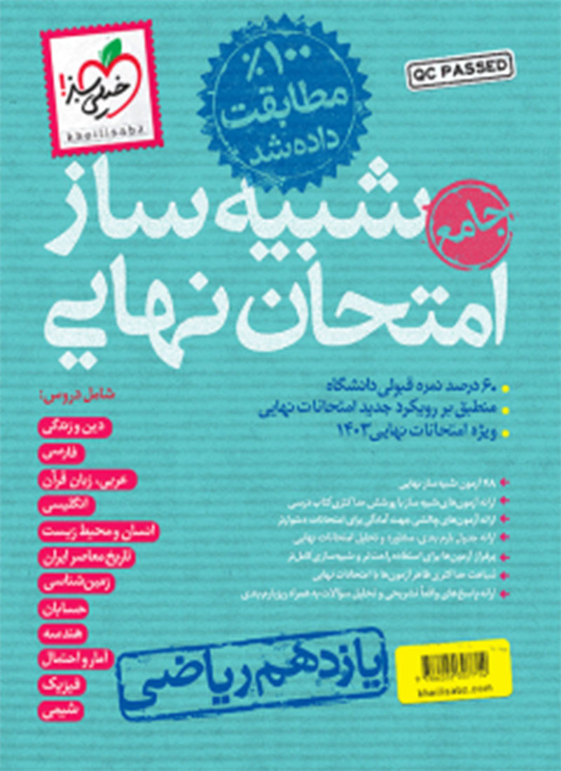 | درس | حسابان-هندسه-آمارواحتمال-فیزیک-شیمی-زمین شناسی-انسان و محیط زیست -فارسی-عربی-دین و زندگی-زبان انگلیسی-تاریخ معاصر |